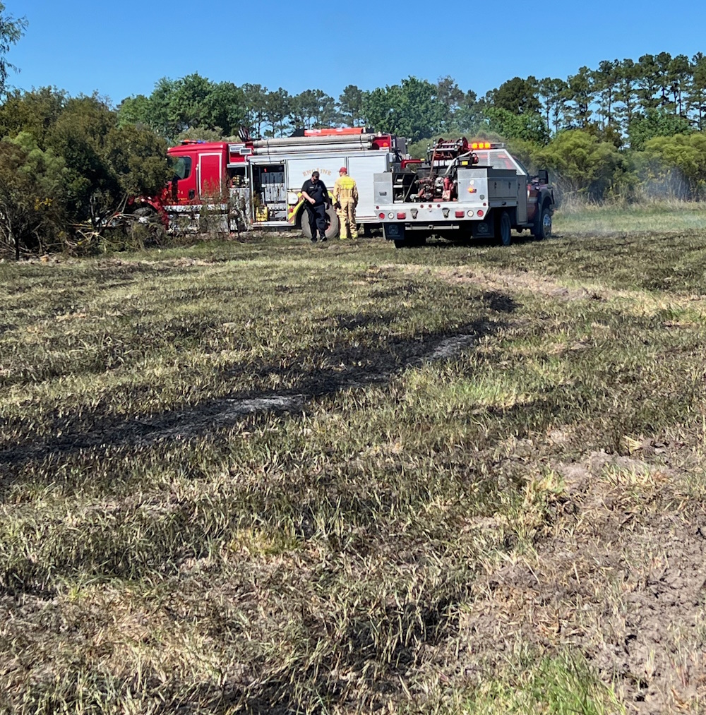 Tuesday firefighters fought a grassfire on Sandpit Rd. in the Little Cypress area. Approximately three acres of grass burned before it was announced as “under control.”