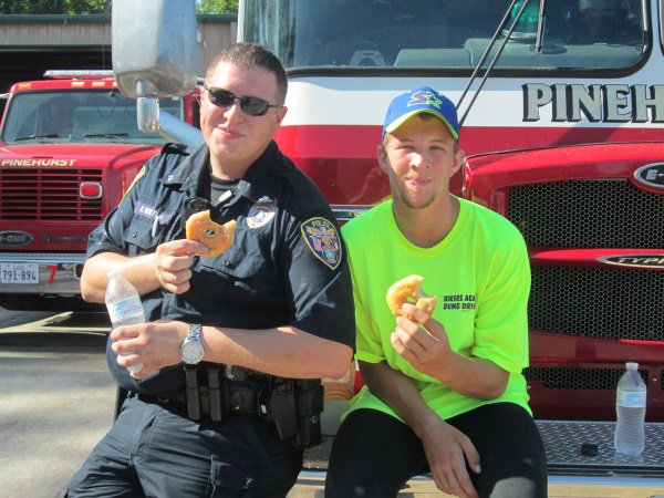 Lee expressed her appreciation for the Pinehurst first responders who shared their time with Tommy. Lee thinks it is a good testament of small town first responders and how far they will go to put a smile on someone’s face like they did for Tommy on Thursday. “Someone has the dream of being one of them, you know that dream may not happen to them due to their disabilities, but it is in their heart,” Lee commented. As a final taste of being a policeman Tommy even shared some donuts with the cops.