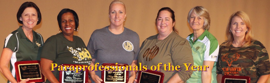 Paraprofessionals of the Year from left are Debbie Stephenson, Debra Champine, Debbie Harris, Nancy Blanchard, Gail Vincent and Linda Riddick. Donna Pitts was unavailable for the photo.