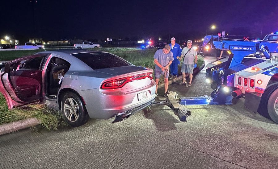 The two girls were in the vehicle at the time of the accident. They were able to get out of the vehicle, swim to the bank and flag down help. Two WOPD Officers, Eugene Summage and Chuck Cobb, along with two other men, jumped in the water and got the unresponsive woman out of the vehicle. West Orange Fire also arrived on scene and the woman received CPR until they were able to get a pulse. The woman was then taken by Acadian to the hospital in serious condition.