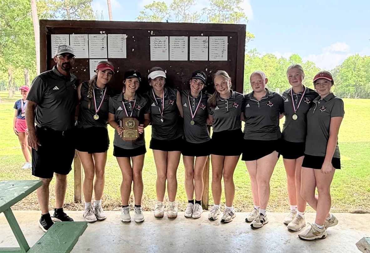 Deweyville Lady Pirates won their 5th straight District Title at the 25AA District Golf Tournament. Kylie Barnes 118, Madilyn Thompson 129, Morgan Clark 122, Kambelle Blackwell 122, Aubree White 143. Team total 491 These girls will compete at the Regional Golf Tournament in Corpus Christi April 16-17. On the boys links, Kallel Crooks finished second overall with an 87 and qualified for the Regional Tournament in Corpus Christi April 14-15. … [Read more...] about Lady Pirates Win Golf Title
