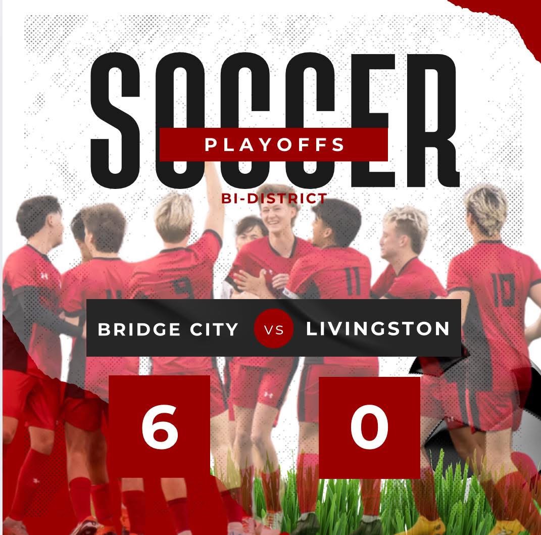 Bridge City Cardinals soccer (19-4) wins the first playoff game in school history defeating Livingston 6-0 on Thursday night in Huffman. Scoring for the Cardinals was Austin Bellanger(2), Hudson Campbell, Jagger Carlin, Nate Stafford, and Bryce Breeden. Assists were Austin Bellanger, Peyton Doucet, Nate Stafford, and Malachi Lyda. Defense was excellent led by Eric Carranza, Hunter Silveira, Connor Smith, and Evan Jackson. Atticus Moore was amazing in goal with the clean sheet shutout. Bridge City is awaiting the results for next round opponent. … [Read more...] about BC Beats Livingston