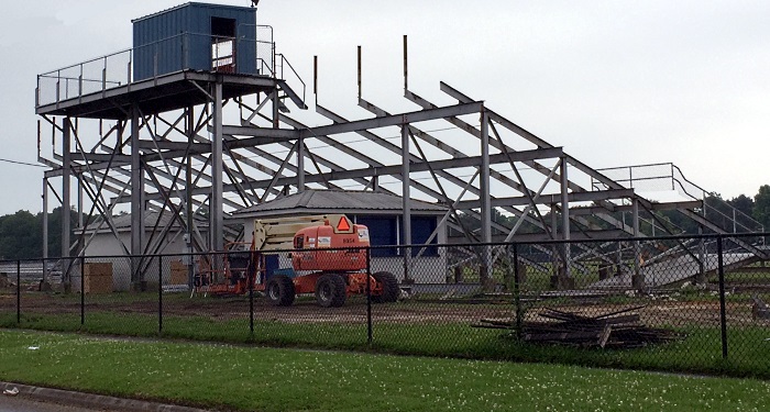 The West Orange – Stark Middle School Stadium is currently undergoing a renovation. The WOCCISD Board of Trustees approved the $293,000 project for the 62 year old stadium earlier this year. The project includes downsizing stadium seating, upgrading restrooms, and improving parking. The aluminum seating in the stands has been removed in order to provide additional reinforcement. New ADA compliant restrooms and parking will be installed, as well as a sidewalk. Modifications will also be made to the concession stand. Additionally, two outer sections of stadium seating will be removed. The … [Read more...] about Stadium Getting Makeover