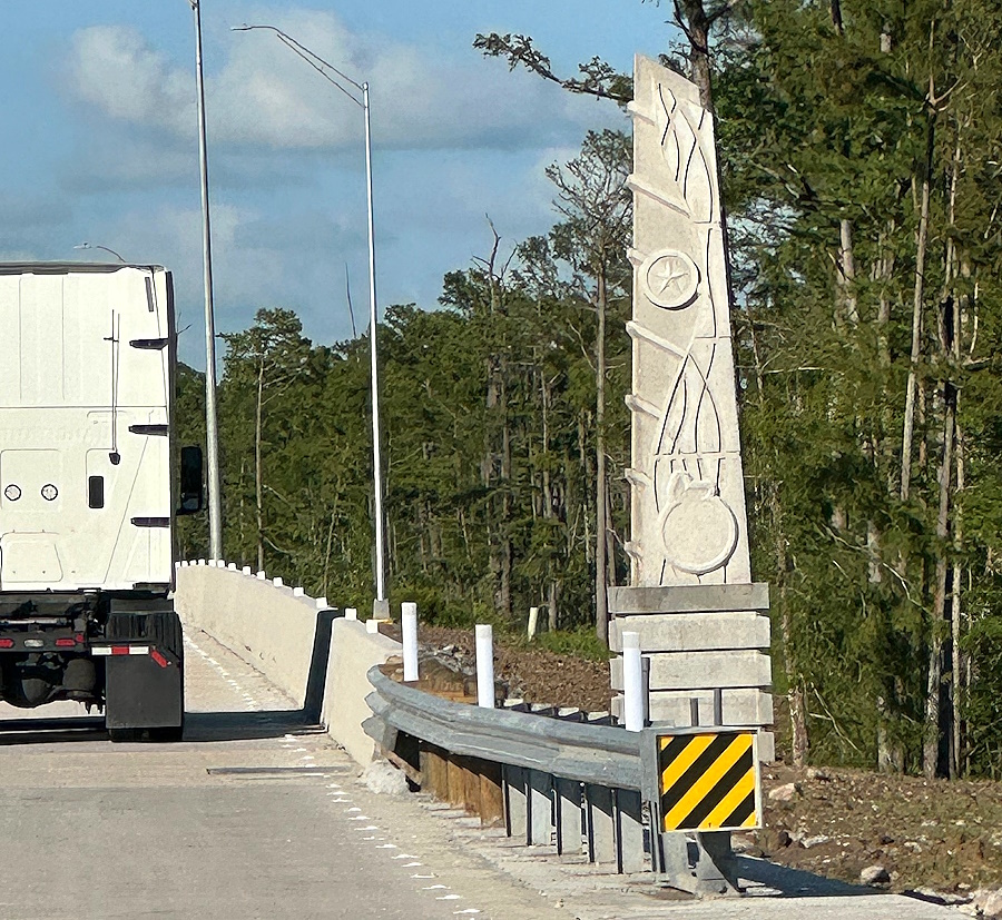 The I-10 widening project in Orange includes artwork with a touch of Orange. There are several along the interstate in the Orange area, featuring an orange on the bottom and the state of Texas star near the top. TxDOT's Tanya Avila told KOGT, "The concrete artwork is part of the IH-10 project in Orange County. The development and implementation of the concrete monuments was a team effort that involved TxDOT and the City of Orange." The artwork will be completed in the final phase of construction that is scheduled to happen in mid-2025. That completion may include a paint color on the … [Read more...] about I-10 Project Includes Artwork