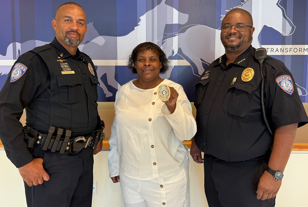 Monday evening West Orange-Cove CISD welcomed Pamela Thomas to the WOC Police Dept. and promoted Shanter Norman (left) to Lieutenant. Thomas retired from DPS after 22 years in 2024. She said she's looking forward to being a positive role model for young ladies as well as for the community. Norman is in his 12th year in law enforcement and second with WOCCISD. He said, "I'm excited about the promotion and ready to give back and pay it forward. I want to be a positive role model and change how people see the police and public safety . It’s more of a calling than a profession to … [Read more...] about WOC Hires One; Promotes Another