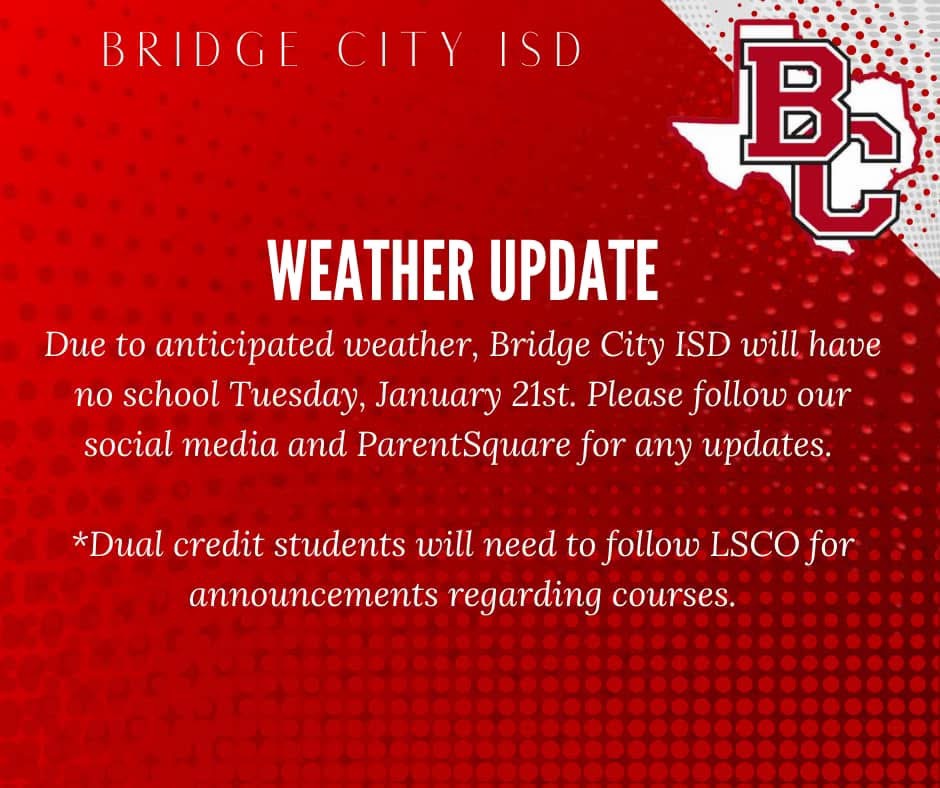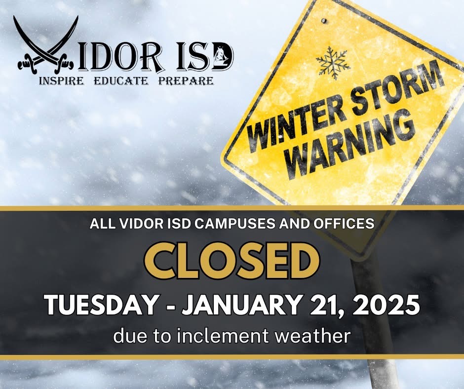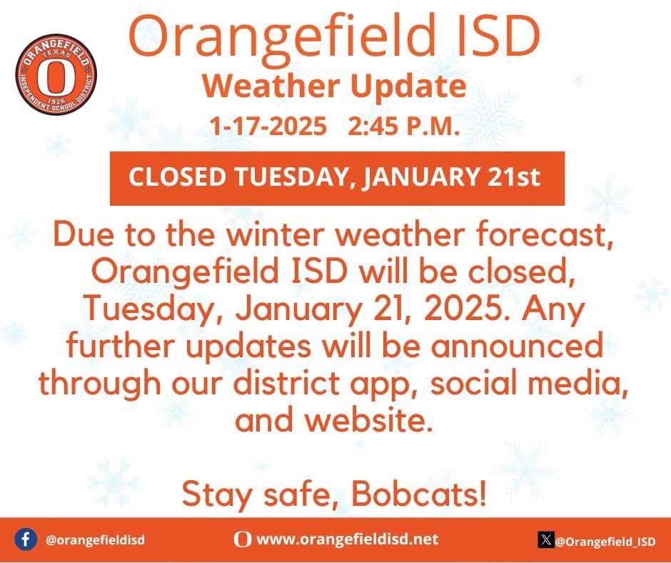 Sunday night KOGT received notices from Orange County schools and Deweyville that they’ll be closed Wednesday as well because of the weather.