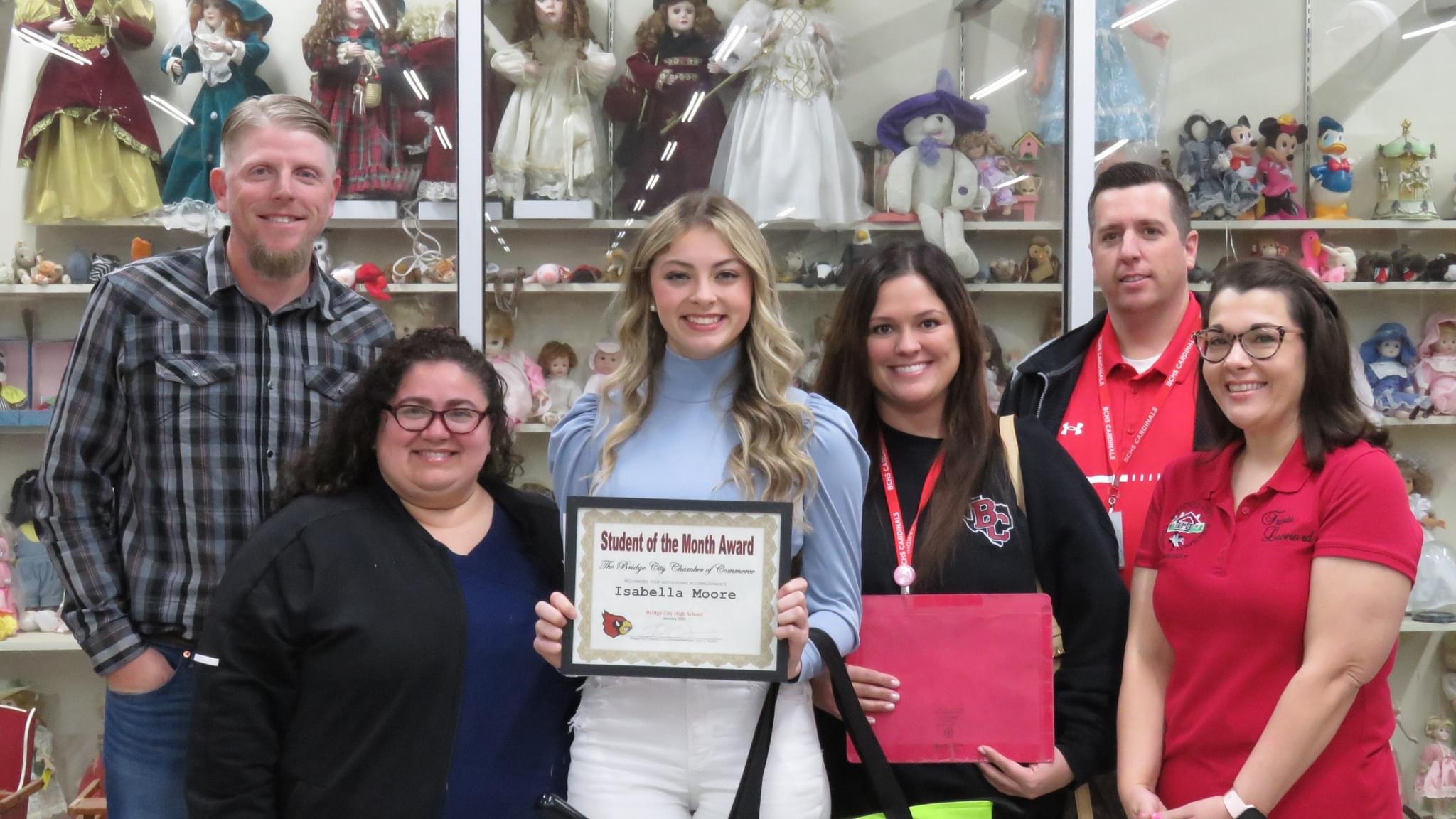 The Orangefield Independent School District hosted this month’s BCCC Networking Coffee. Congratulations to the Bridge City Student of the Month- Isabella Moore (above), Orangefield Student of the Month-Kylie Mouton, Employee of the Month- Tim Tremont with Orangefield High School and Business of the Month which is Bridge City First. The next Networking Coffee is on February 21st at Bridge City Animal Hospital at 8am! Have a great week and hope to see you all at our next Coffee!